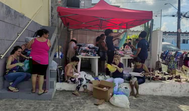 Outra iniciativa importante é o brechó solidário. Roupas arrecadadas em bom estado são organizadas e vendidas a preços acessíveis, com os valores revertidos para a continuidade das ações sociais.