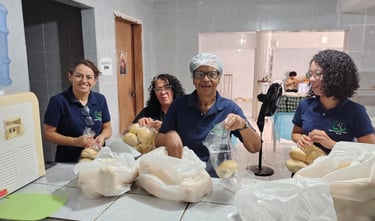 O atendimento acontece uma vez por mês e inclui a distribuição de cestas básicas completas, roupas e materiais de limpeza. As famílias também recebem uma sopa quentinha, preparada com dedicação e carinho, acompanhada de pão em quantidade suficiente para todos os membros cadastrados no projeto.
